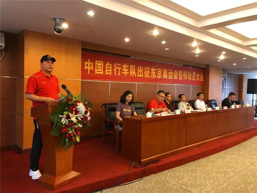 近日,东京奥运会中国体育代表团名单正式公布,代表团总人数为777人,其中运动员431人,教练员、领队、科医人员等运动队工作人员307人,团部工作人员39人。本届东京奥运会是中国体育代表团境外参赛规模最大的一届奥运会。其中自行车项目代表团由17人组成,运动员9人、工作人员8人。7月14日,中国自行车队出征东京奥运会誓师动员大会在老山训练基地举行,熊猫体育副董事长卞青峰受邀出席并致辞。