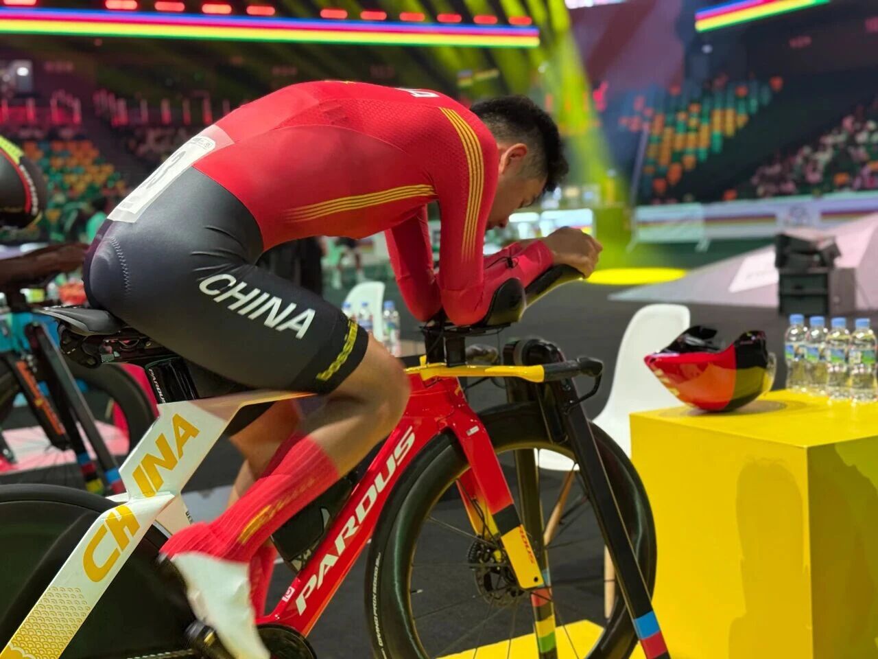 在2025国际自行车联盟(UCI)公路自行车世界锦标赛卢旺达基加利的焦点战中。中国选手李优骑乘泰山瑞豹GOMERA EVO TT战车以 42分56秒成绩完赛,最终位列第24名,不仅大幅改写中国队在该项目的历史最佳成绩,更在冲线瞬间一度将中国国旗送上实时成绩榜榜首,成为赛道上亮眼的 “中国力量”。